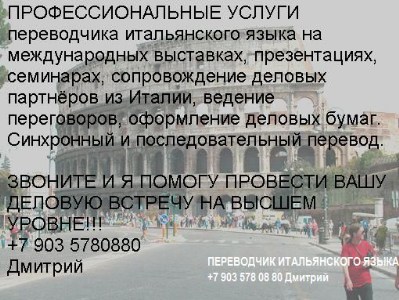 Переводчик итальянского языка +7 903 578 08 80 Дмитрий